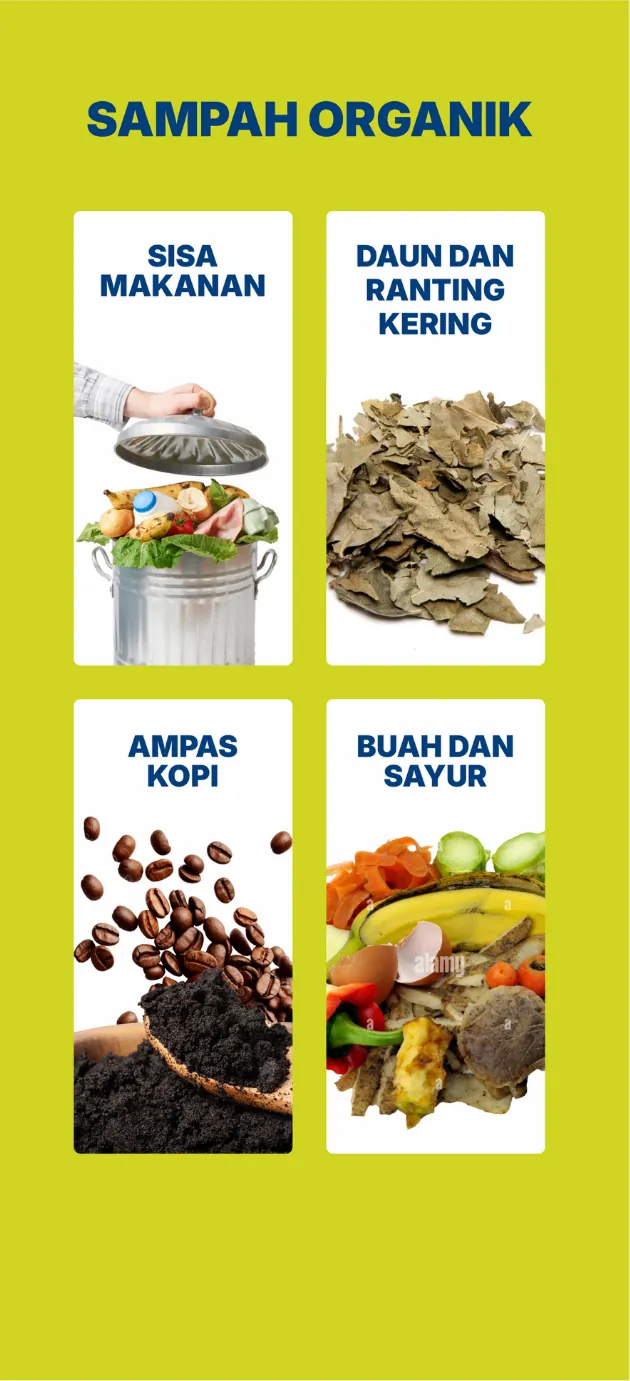 Sisa makanan, dedaunan kering, dan ampas kopi.