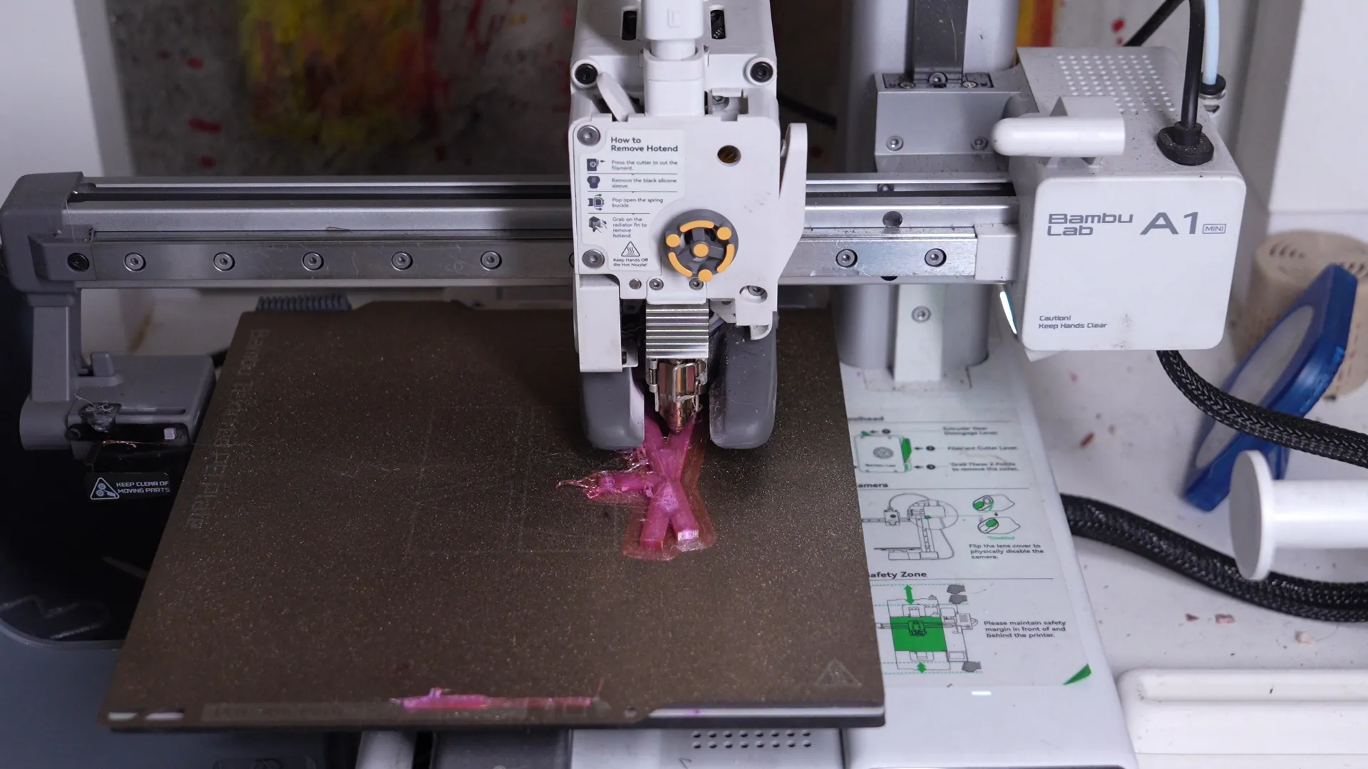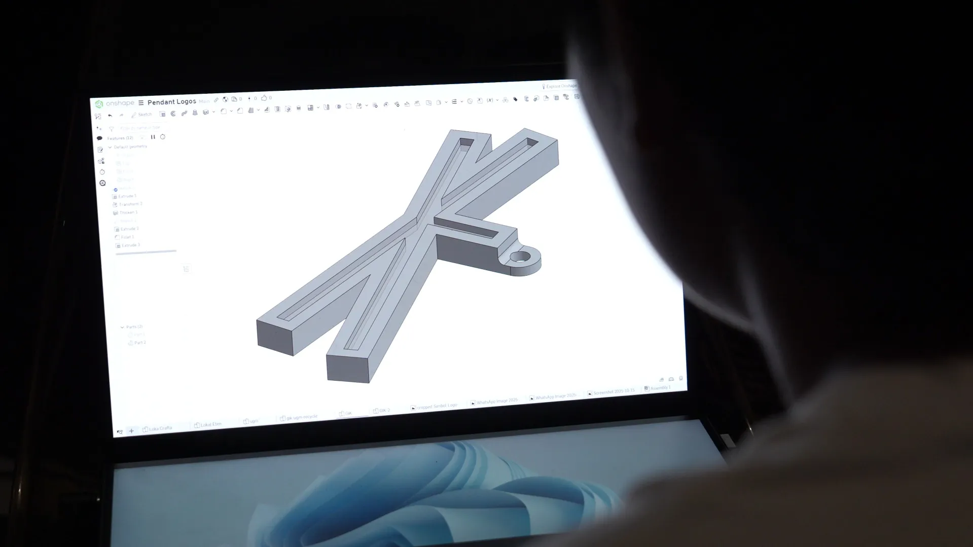 Filamen hasil daur ulang dipanaskan dan dicetak lapis demi lapis hingga membentuk gantungan kunci secara utuh.